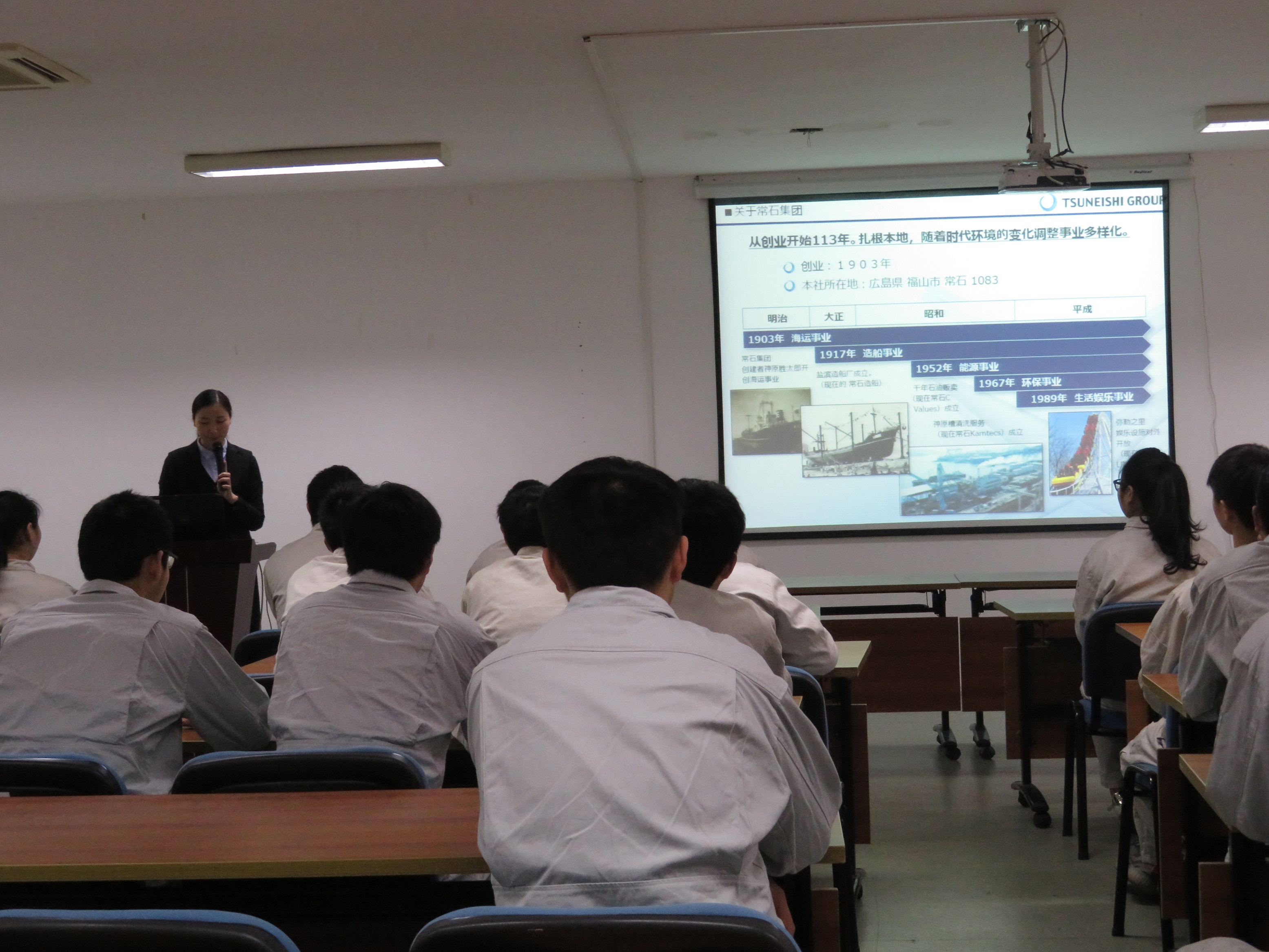 前輩為我們介紹集團(tuán)事業(yè)概要時(shí),我聽(tīng)得極為認(rèn)真。前輩說(shuō):常石集團(tuán)是一個(gè)百年集團(tuán),目前,已在日本,中國(guó),菲律賓,巴拉圭開(kāi)設(shè)了船廠,并涉及了包括環(huán)保、造船、航運(yùn)、能源、娛樂(lè)在內(nèi)的這幾個(gè)行業(yè)領(lǐng)域。前輩講到最后的那句話特別讓我感動(dòng),她說(shuō):我們每個(gè)人都要保持一顆好奇的心去探究未來(lái)。