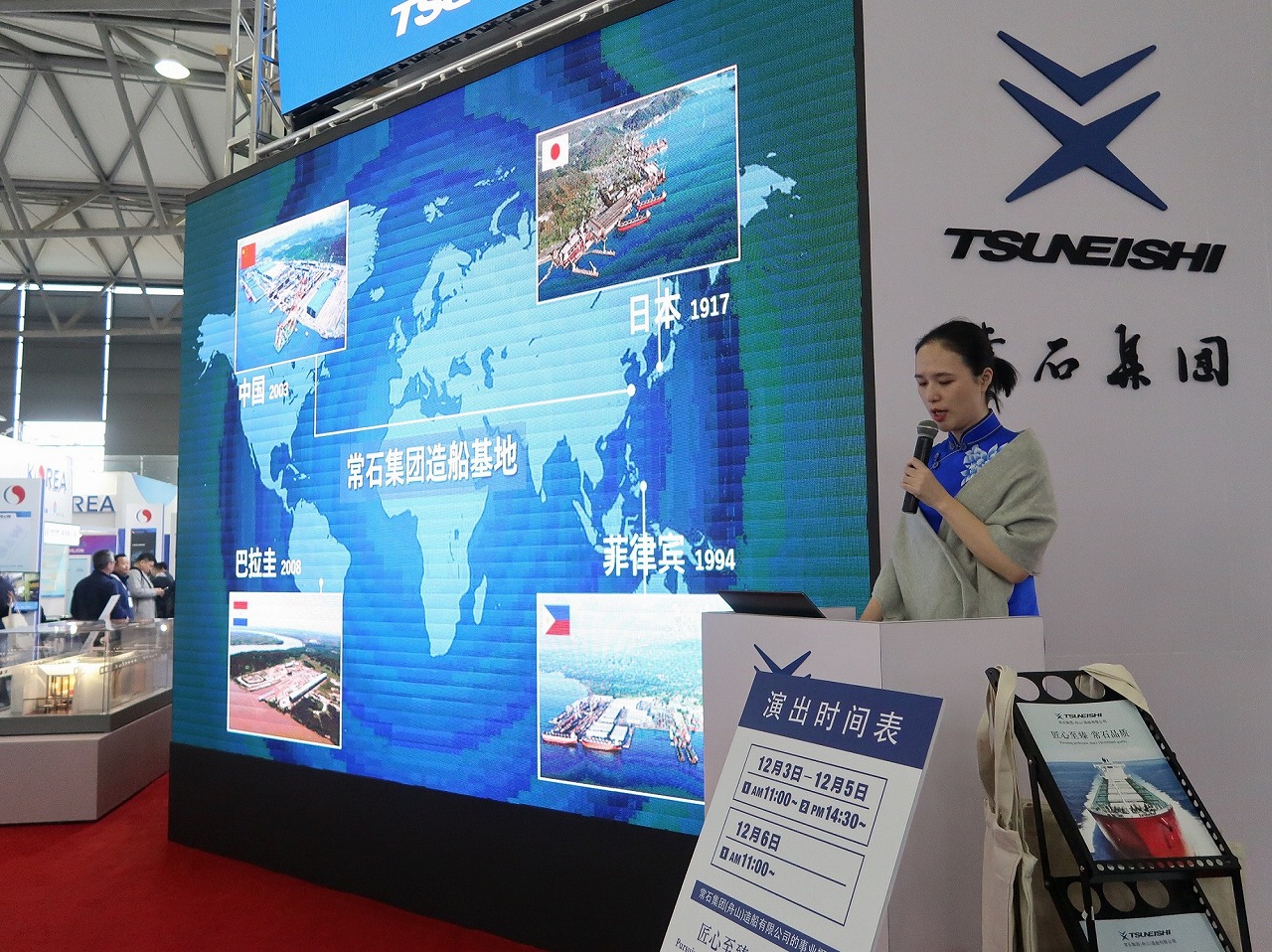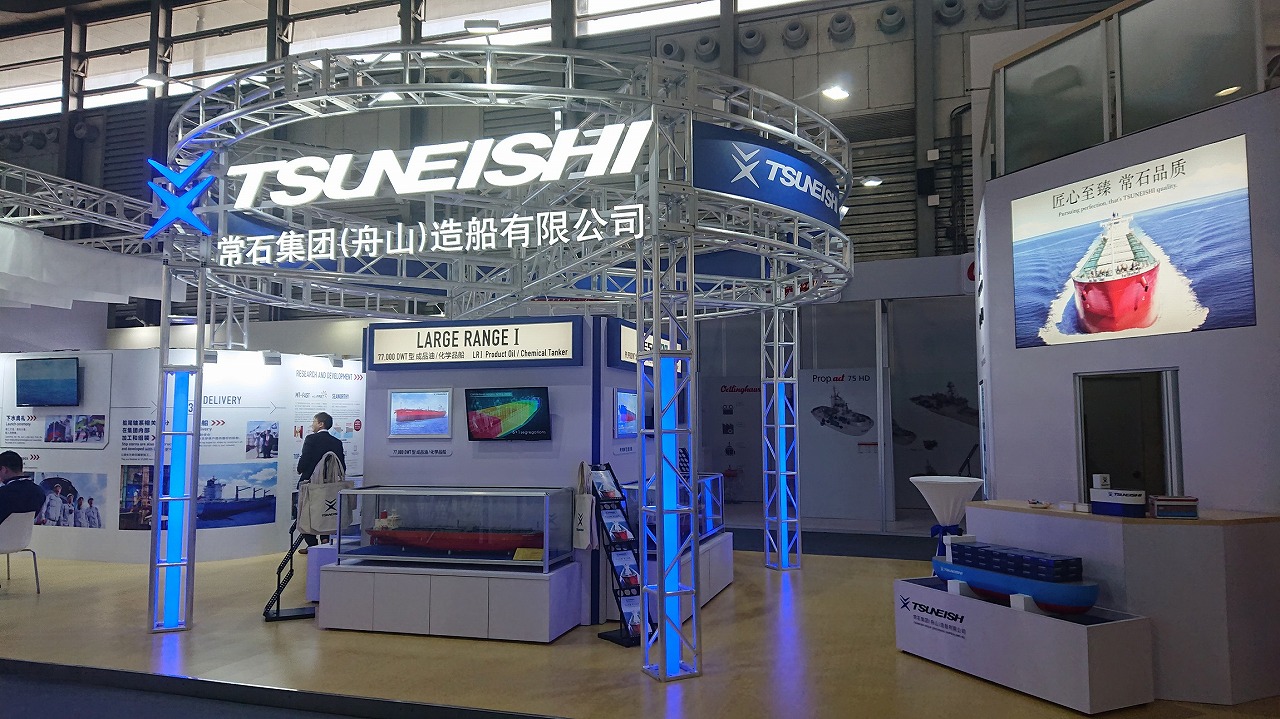 常石集團(舟山)造船有限公司(所在地:中國浙江省舟山市岱山縣秀山鄉(xiāng);總經(jīng)理:佐藤二郎;以下簡稱:TZS)參加了在上海新國際博覽中心(Shanghai New International Expo Center)召開的國際海事展覽會“MARINTEC CHINA 2019”(2019年12月3日(周二)~6日(周五)為期4天)。繼2015年、2017年之后,在本次展會上也搭建了展臺,充分展示了一直以來取得穩(wěn)定成長的業(yè)績以及飛躍提升的建造能力等本公司的諸多優(yōu)勢。